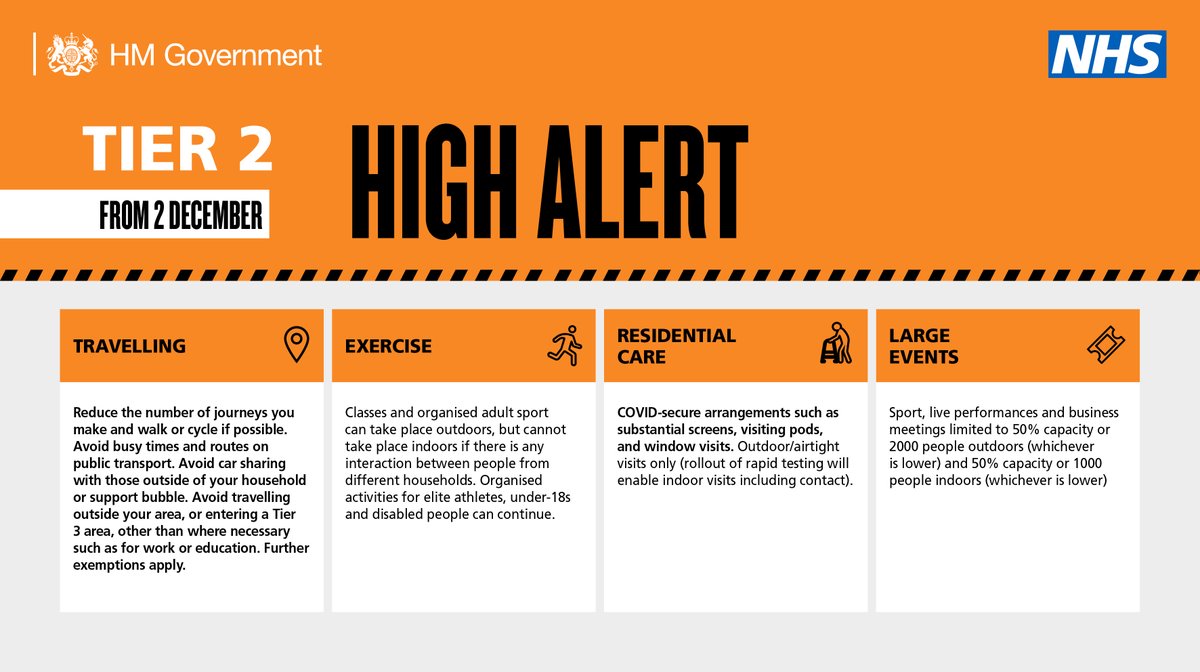 High alert, or tier 3: What tier am i in? In these areas, bars and restaurants will be limited to takeaway or delivery services and people will be advised to avoid travelling outside their area. People can only meet outdoors in limited places such as parks and public gardens. Tier 3 no mixing indoors.
